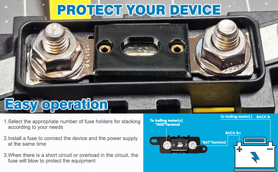 - Versatile Applications: Ideal for inverters, car audio systems, high-current protection, and ignition-protected environments.